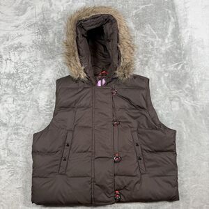 Gap Puffer Vest Youth XL Brown Down Removeable Faux Fur Full Zip Snap