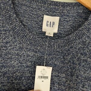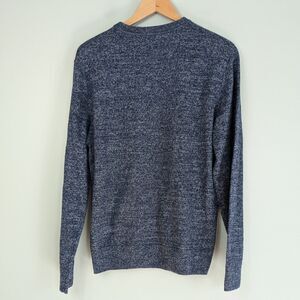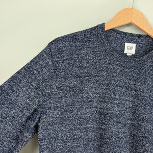 Lightweight long-sleeve pullover sweater with a crewneck from GAP, size medium. 100% cotton. Flecked dark blue and white knit. Ideal for classic, preppy, timeless, minimalist, and capsule vibes. Perfect for fall, winter, business casual, work, and church.
