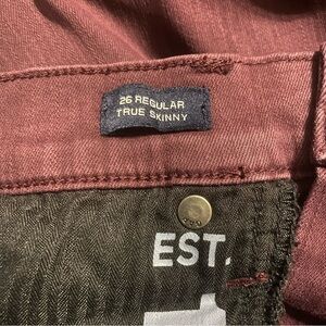 Gap Womens Size 26 Regular Purple True Skinny Stretch Jeans in excellent used condition. The material tag has been cut out but feels to be cotton blend. No stains, tears or rips.