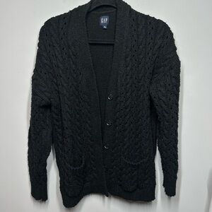 Gap Recycled Cable-Knit Pointelle Button Up Cardigan Sweater Black, Size M