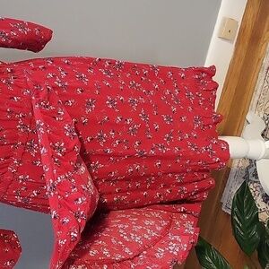 Gap Red Floral Faux Wrap Rayon Pullover Elastic Waist Dress in Size SP
