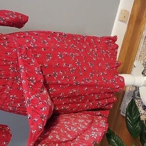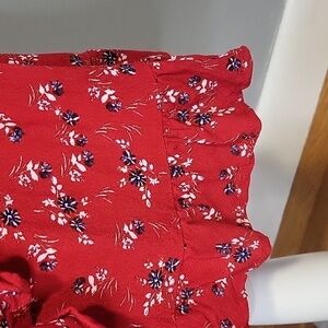 Gap Red Floral Faux Wrap Rayon Pullover Elastic Waist Dress in Size SP