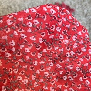 Gap Red Floral Sheer Long Sleeve High Neck Top with Elastic Hem&Neck Size XLG