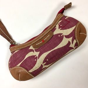A Gap Red Project for Africa Pebble Leather & Canvas Fish Print Zippered Pouch