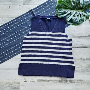 Gap Relaxed V Neck Sweater Vest Navy White Stripe Size Medium