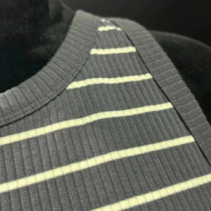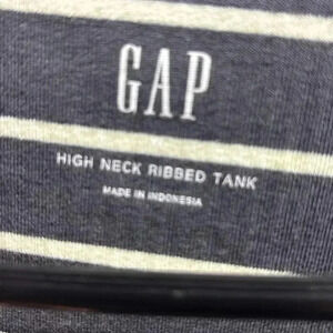 Gap Rib Knit Round neck,tank top/shell, stripe, stretch,gray and ivory