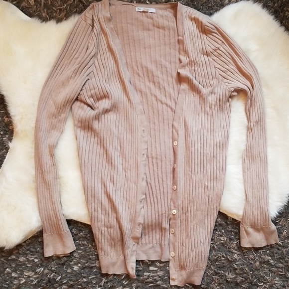Tan ribbed cardigan with button front