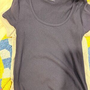 large, ribbed, cap sleeve. Super soft. Still 19.99 on gap.com