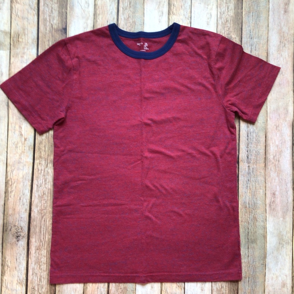Textured looking (red with blue flecks) ringer tee. VGUC