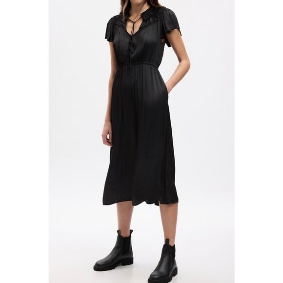 Gap Ruffle-Neck Midi Dress size medium . See pictures with measurements. Gently used preowned condition. Color maybe slightly different due to light