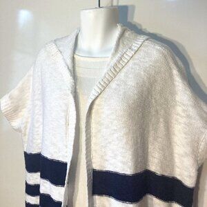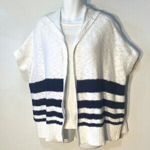 Gap SZ S Oversized Hooded Navy & White open front cardigan classic nautical casual