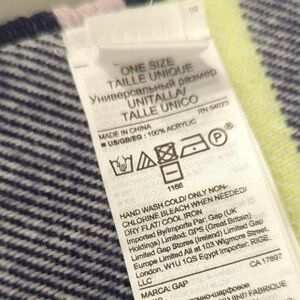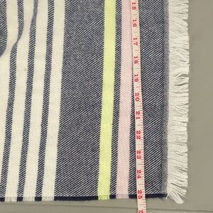 Stylish scarf with stripes. Features blue, pink, and cream colors. Soft and cozy fabric.