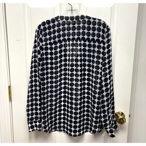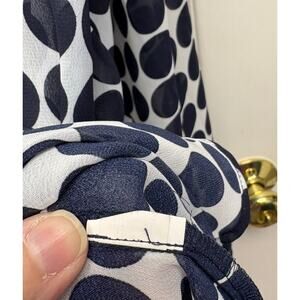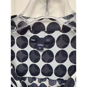 Gap Sheer Navy White Blouse With Navy Polka Dots, Split Neck, Woman's Size M