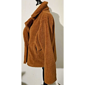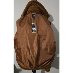 Gap Sherpa Moto Jacket Women's Sz M Brown Double Breasted NEW