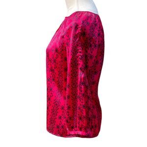 Gap Shiny Red and Navy 3/4 Sleeve Top With Keyhole Closure, Size M