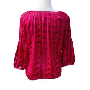 Gap Red and Navy 3/4 Sleeve Top With Keyhole Closure, Size M