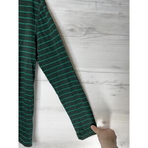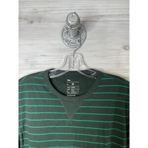 Gap Shirt Mens Medium Green Striped Long Sleeve Crewneck Cotton Casual V-Stitch