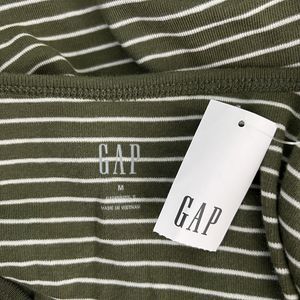 Gap Shirt Women Medium Green White Stripe T-Shirt Everyday Basic Casual Minimal