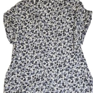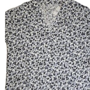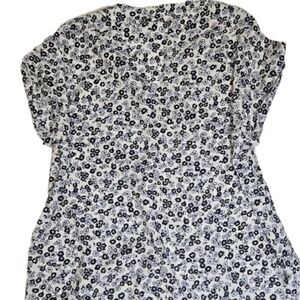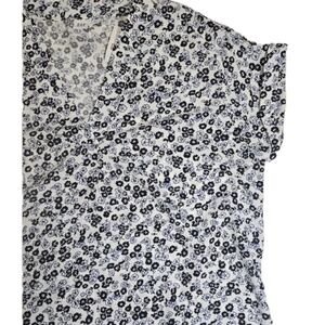 Gap Shirt Womens Large Blue White Floral Short Sleeve V Neck Rayon Lightweight