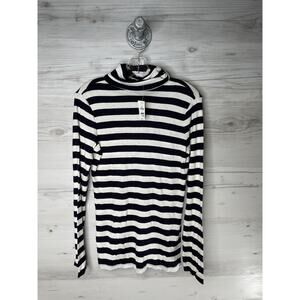 Gap Shirt Womens Medium Navy White Stripe Supersoft Turtleneck Long Sleeve Pima