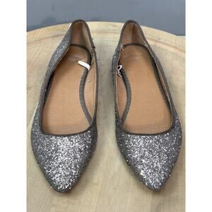 Gap Shoes Womens Size 6 Silver Glitter Pointed Toe Ballet Flats Sparkle Party