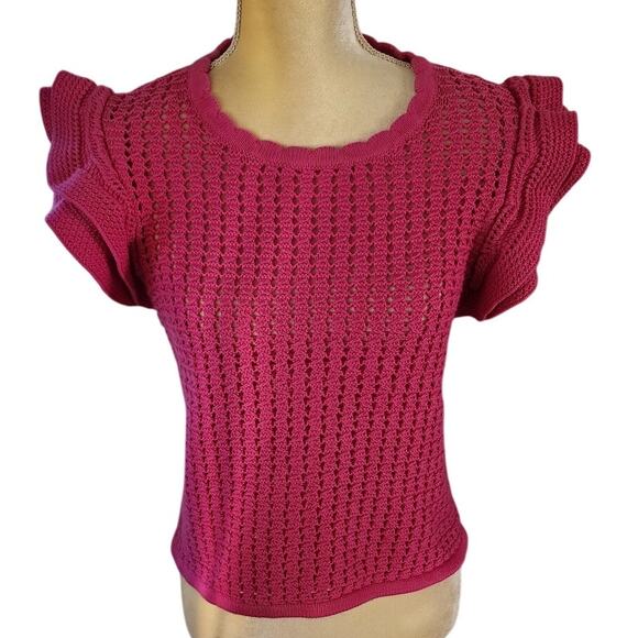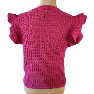 Gap Short Ruffle Flutter Sleeve Crochet Pinkish Purple Knit Sexy Sweater Medium