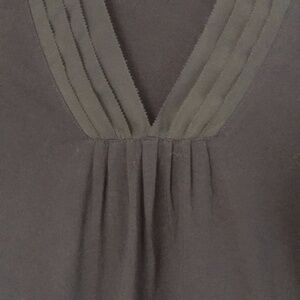 This super cute Gap tee features a v-neckline with chiffon trim and front pleats.