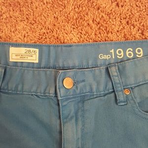 These are a light navy blue gap sexy boyfriend shorts. Never been worn. They have a cuff at the bottom that is sewn.