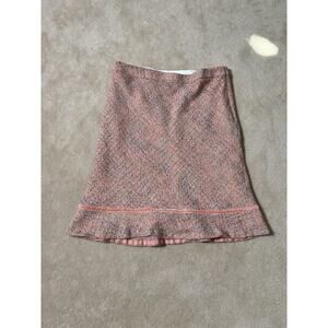 Gap Size 12 Wool Blend Black Pink Tweed Pencil Skirt Velvet Trim Flared EUC