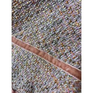 The product is a Gap Size 12 Wool Blend Black Pink Tweed Pencil Skirt with Velvet Trim, featuring a flared style. This knee-length skirt is perfect for a business occasion with a solid pattern, zip closure, and flat front design. Made from wool fabric, it is versatile to wear in all seasons and adds a colorful touch to any wardrobe.