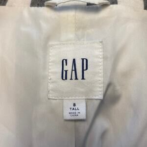 Gap stripe linen blend blazer. Front flap close pockets. One button closure. Lined. Soft black and ivory stripes. Size 8 Tall. Preowned, no flaws.