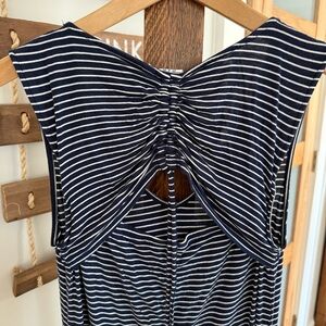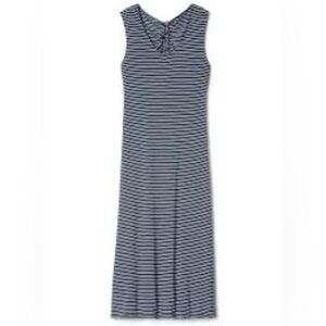 Gap Sleeveless Knit Midi V-Neck Dress Navy/White Striped Viscose Spandex XS EUC