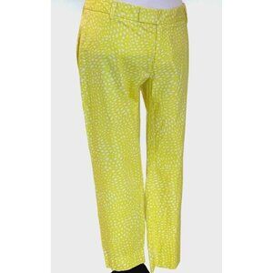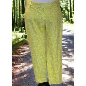 Good pre owned condition. No visible stains, rips or holes.Gap slim cropped women's flat front pants in size 6PYellow and white stretch fabricSkinny leg styleFlat front closureCropped lengthPerfect for spring and summer