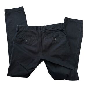 Sleek navy flat front chinos. Versatile and comfortable. Ideal for casual or formal wear.