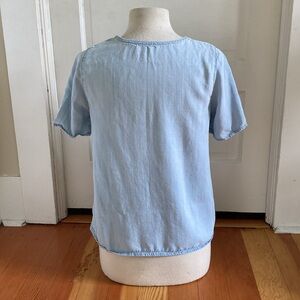 Gap short sleeve pocket tee chambray shirt. Feels like 100% Lyocell but fabric tag has been removed.
