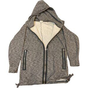 Gap Small Gray Zip Up Hooded Longline Jacket Pockets Drawstrings
