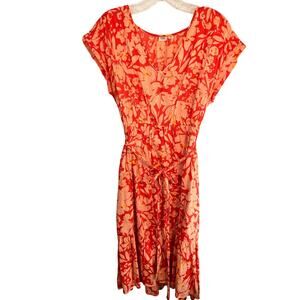 Gap Small Orange Floral Women's Sleeves Sun Dress Miss Size 4 6 S
