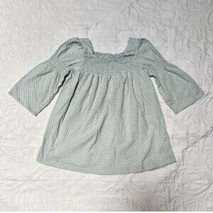 Baby Gap long full sleeve dress. Blue and white dot design with smocked details. Very good condition, minor wear. Size 12-18 months.