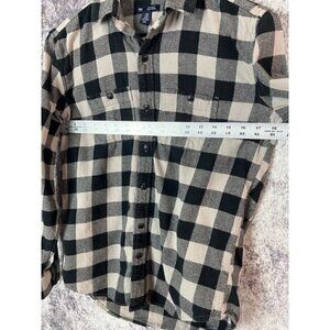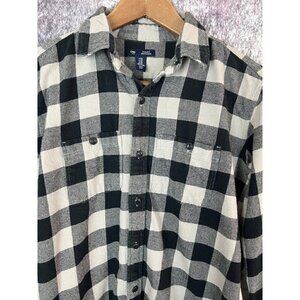 Gap Standard Fit Black White Button Down Casual Flannel Shirt Mens XS