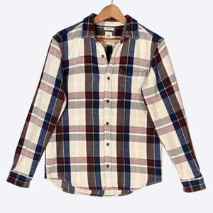 Men's Standard Fit Thick Flannel Plaid Print Shirt from Gap in White, Red, Blue. Size Small.