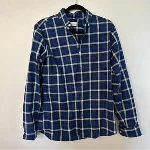 Gap Standard Fit Stretch Blue Plaid Men' Button Down Shirt Size Small GUC