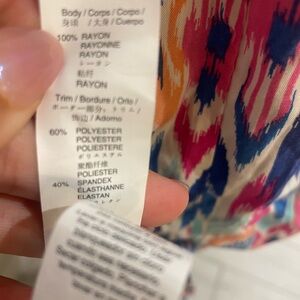 • Material: 100% Rayon (body) | Trim: 60% Polyester, 40% Spandex