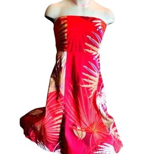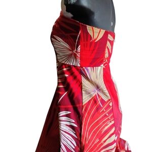 Gap Stretch Burnt Orange Palm Print Strapless Imperial Waisted Midi Dress Size 2