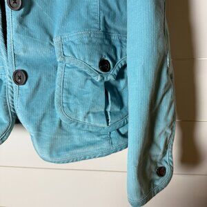 Gap StretchCorduroy Jacket Turquoise Fully Lined Button Front Elbow Patches Sz 6