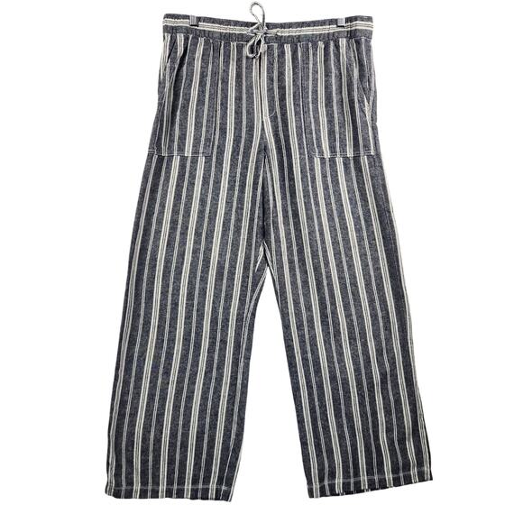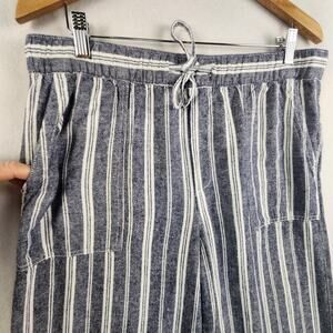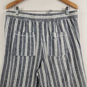 Gap Striped Blue/Cream Linen Blend Pullon Pants Women’s SZ LG Beachy Breathable