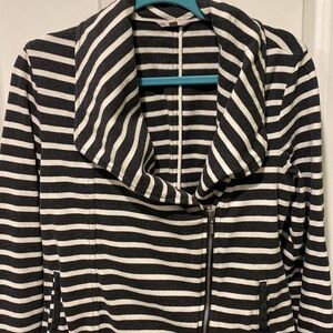 Gray and white striped blazer jacket with asymmetrical zipper from Gap