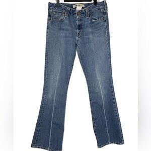 Gap Super Curvy Flare Pleated Denim Blue Classic Jeans sz 10 Long