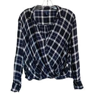 Gap Surplice Wrap-Front Shirt in Navy/White/Blue Plaid M