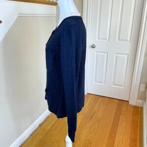 Gap Cardigan Sweater Lady Style Navy Alpaca Wool Blend 4 Pocket Long Sleeve (M)