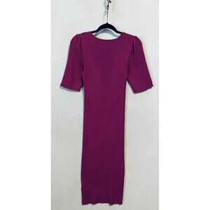 Gap Sweater Dress Womens Large Pink Sweatheart Neck Puff Sleeve Ribbed Bodycon